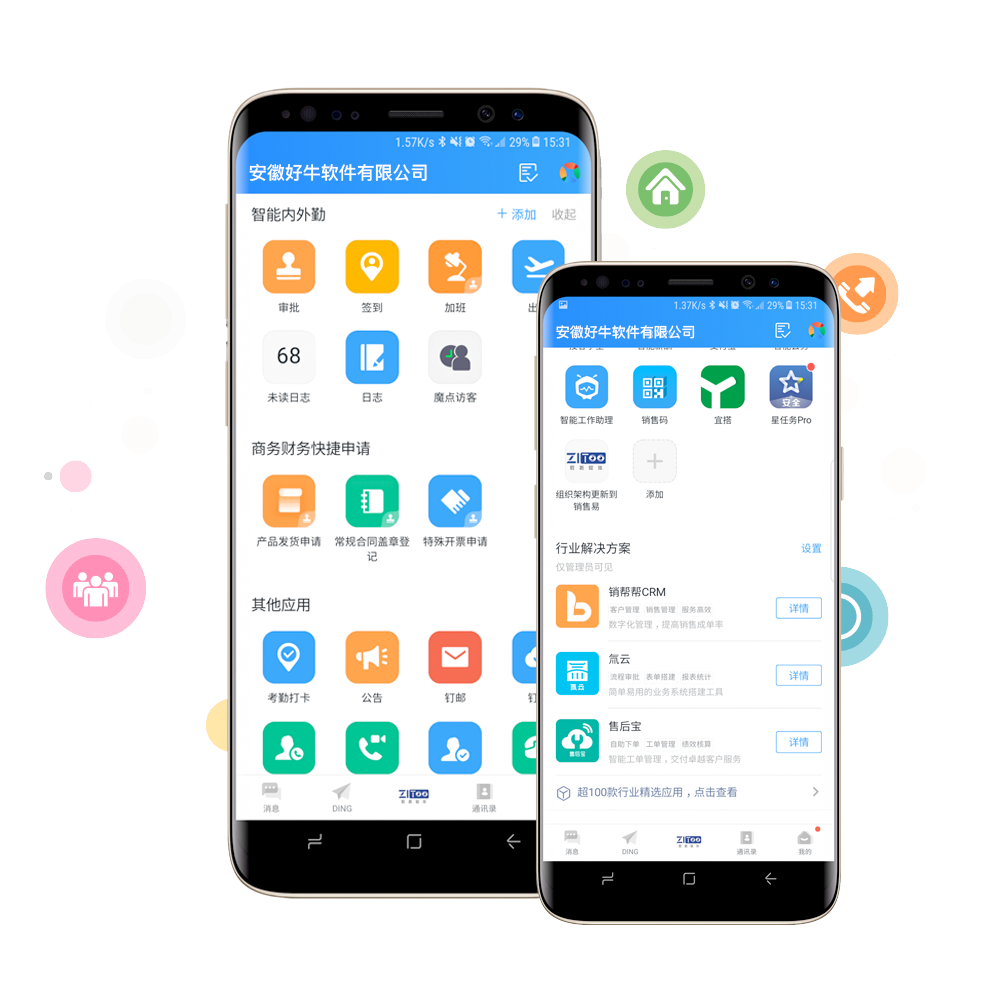 安徽好牛软件有限公司是阿里巴巴钉钉指定集成服务商,依托15年行业ERP服务开发经营,基于钉钉平台,运用阿里云数据储存、传输、安全策略等技术,帮助企业定制开发各种深度钉钉微应用,争做最好的移动办公云平台,为用户打造一站式移动办公平台,目前已上架钉钉应用市场微投票、微报销、微活动等精品应用。
