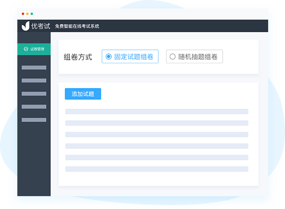 固定试题、随机试题、按部分出题等灵活组卷方式;